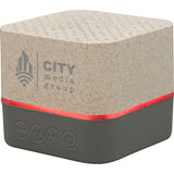 Part of the EarthTrendz™ collection featuring eco-friendly, recycled materials. Light up, color changing 3W Bluetooth® speaker. Constructed with materials including eco-friendly Wheat Straw/ABS mix exterior & Silicone bottom. Flashing color lights. TF card slot. Approx 1 ½ hrs of play/talk time. Approx 2 hrs charging time. Operating range of 33'/10 M. Connect via Bluetooth® 5.0 technology. Compatible with most Bluetooth® enabled devices. Includes Micro USB charging cable and user manual. 2" H x 2.25" W x 2.25" D