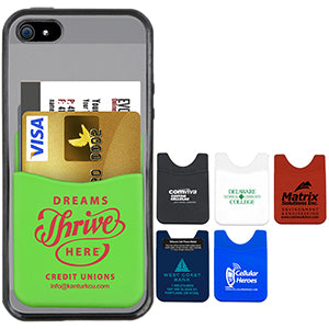 You can add your logo using screen printing, UV printing, or full-color digital printing. Choose from silicone, leather, or fabric options in various colors. These custom phone wallets make great giveaways at events, trade shows, and promotions.