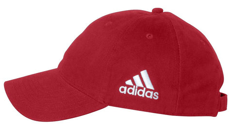 Made of 100% polyester. Features structured, six-panel, mid-profile and moisture-wicking. It has UV protection of 50+ UPF, embroidered Adidas logo on left side panel and Velcro® closure. Complies with Prop 65.
