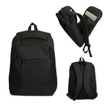 Laptop Backpack is heathered polyester, 18 liter capacity, and fits laptops up to 17". Double zipper closure to main compartment lined with 210T PU. Inside has an open padded laptop sleeve, two pen holders and an open slash pocket. Comes with one top webbed carry handle and one padded carry handle. Adjustable shoulder straps, padded mesh on back panel & shoulder straps for comfort. Packed in a non woven storage bag. Complies with Prop 65. 13" W x 19" H x 6" D