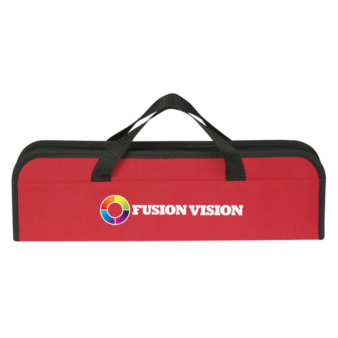 Includes: Spatula, Fork And Pair Of Tongs. Zippered Travel Case With Dual Handles. Complies with Prop 65. 2.0000" D x 15.7500" W x 4.7500" H