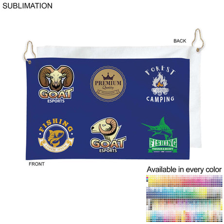 From $5.93Unit price /UnavailableColored Velour Terry Cotton Blend Golf Towel, Finished size 15x25, Nofold Grommet Hook, Sublimated