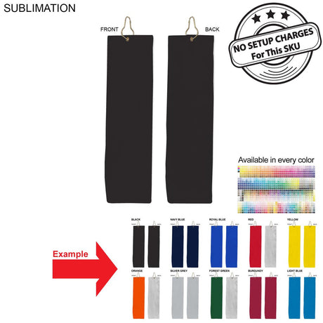 From $3.50Unit price /UnavailableColored Velour Terry Cotton Blend Golf Towel, Finished size 15x25, Nofold Grommet Hook, Sublimated