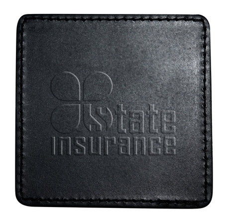 Genuine Leather Square Single Coaster with Stitched Edge - black