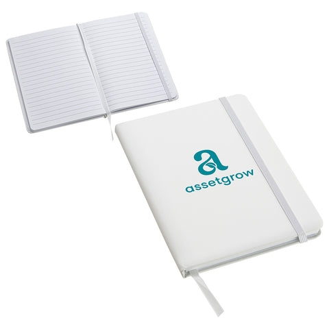 Writing companion that combines style and functionality. This journal features a durable laminated hardcover, protecting 80 sheets (160 pages) of 70GSM white paper embellished with ruled lines. The color matched elastic ribbon closure ensures your thoughts stay secure, while a convenient color matched ribbon bookmark helps you pick up where you left off. Elevate your writing experience with this elegant and practical journal. Complies with Prop 65. 5" L x 0.5" W x 7" H