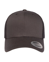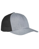 74% polyester, 26% cotton; Style is transitioning from 65% polyester/35% cotton; Mixed fabric inventory may occur; 5-panel, structured, mid-profile; Eight-row stitching on bill; 3 1/2" crown; Hard buckram backed front panels; Plastic adjustable closure; Matching undervisor; Permacurv® visor;