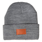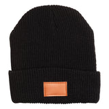 This 100% acrylic rib knit beanie features a PU faux leather patch on the front cuff. PU patch measures: 1.96"w x 1.18"h. Hand-wash only. Do not iron. One size fits most. Complies with Prop 65.