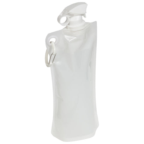 Flip Top Foldable Water Bottle with Carabiner is made from PE+PA(Nylon)+PET, holds 27 ounces, and has easy to use flip open top and is freezer safe. Hand wash only. Complete with large color coordinated cap and carabineer clip. BPA free and FDA certified. Complies with FDA, Prop 65. 12" W x 5.5" H