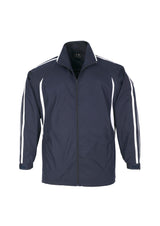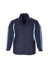 100% Micro fiber jacquard ripstop with micro fiber panels and single jersey lining, and 100% polyester taffeta sleeve lining. Features raglan sleeve top with flash splice and twin stripe detail, full zip front with 2 zippered pockets, zipper access for embroidery, and elasticated sleeve cuffs with adjustable Velcro® flap.
