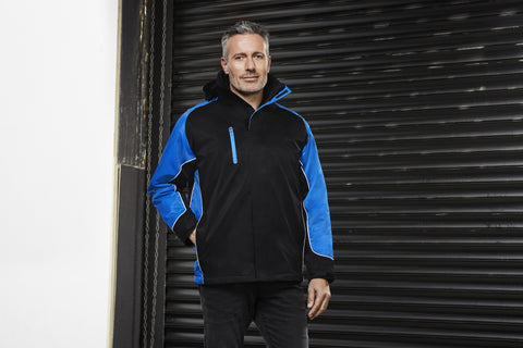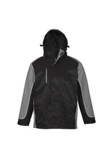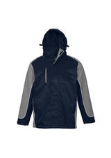 100% Nylon outer with 100% polyester micro fleece body lining and 100% polyester sleeve lining. Features contrast panel with piping, concealed hood with 2-way full zip with storm flap, internal pocket, and front right chest pocket with MP3 access. Zipper access for embroidery.