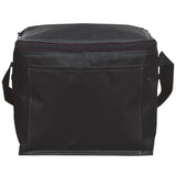 This 70 denier polyester insulated cooler lunch bag closes securely with a three sided top zipper closure while the inside is a grey PEVA liner. Non-adjustable/non-detachable carry strap makes toting around easy. Lunch Cooler holds six cans and comes with a front slash pocket. Complies with Prop 65. 8.5" W x 7" H x 5.75" D