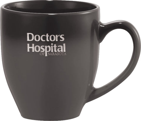 Cozy ceramic mug with a glossy finish and trendy ombre gradient pattern. Choose between color imprinting or our new cutting edge dishwasher safe laser decorating method. 16oz. Complies with Prop 65. 3.7" D x 5.31" W x 4.21" H
