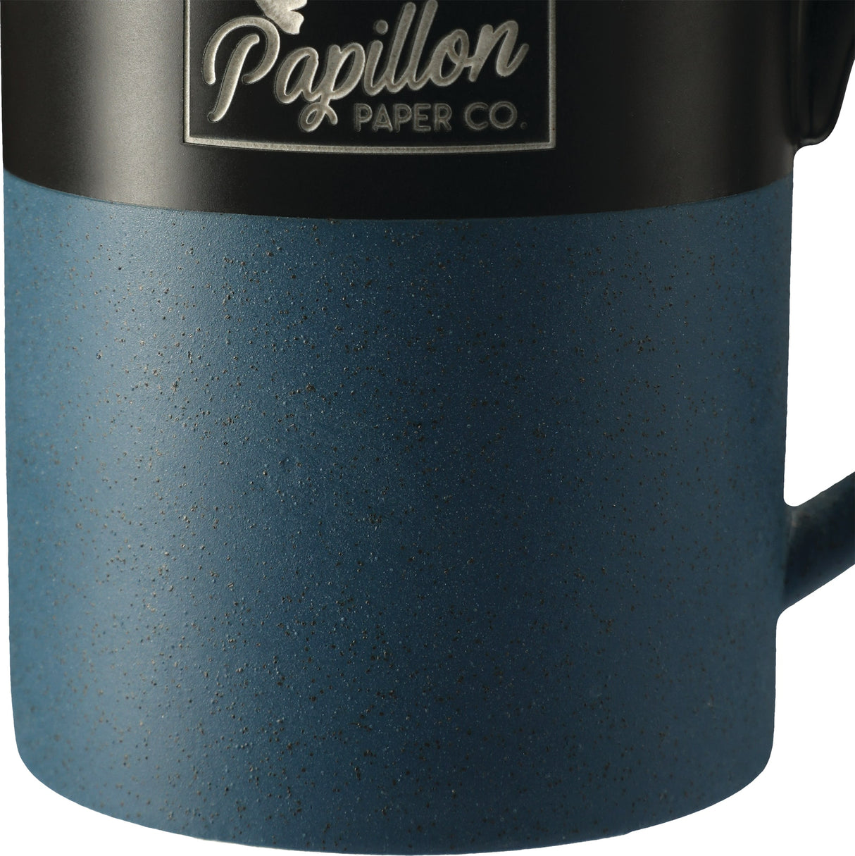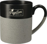 The Otis Ceramic Mug features a two-tone design that combines a speckled base with a matte black top. Choose between color imprinting or our new cutting-edge, dishwasher-safe laser decorating method to add customization to your Otis mug. 3.58" D x 3.5" W x 4.18" H