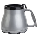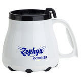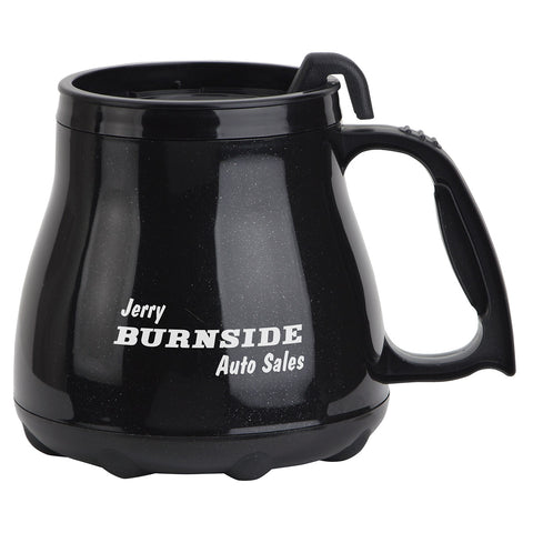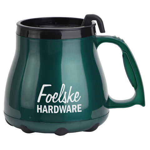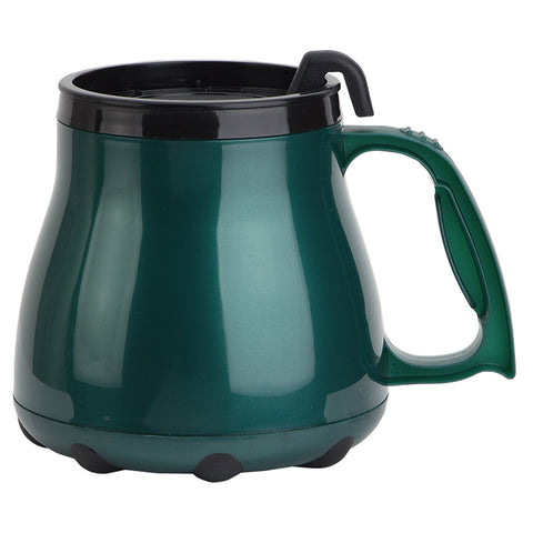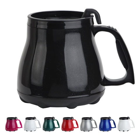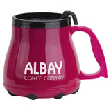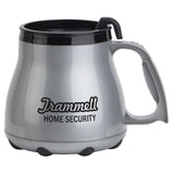 Made in the USA! Palisade 16 oz Desk Mug features double-wall polypropylene construction for insulation of hot or cold beverage, non-skid bottom and wide base design eliminates spills, sip-through thumb-slid lid for convenient opening and closing. Compact size fits nicely in most single serve coffee makers such as Keurig. Microwave and dishwasher safe. BPA Free and FDA certified. Must be ordered in exact case quantities. All lids assembled on drinkware. Tariffs do not apply. Complies with FDA, Prop 65. 5.25" H x 4.5" Diameter