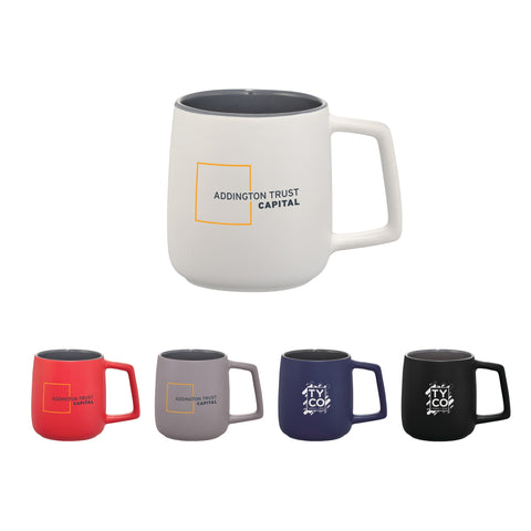 Enjoy your coffee, tea, hot cocoa, or other favorite beverage while making a subtle style statement with the Sienna Ceramic Mug 14oz. It features a smooth, matte exterior with a high-gloss interior wall, creating an attractive contrast. This sturdy, compact mug can be customized with color imprinting or our dishwasher-safe laser decorating method. 4.72" D x 3.3" W x 3.93" H