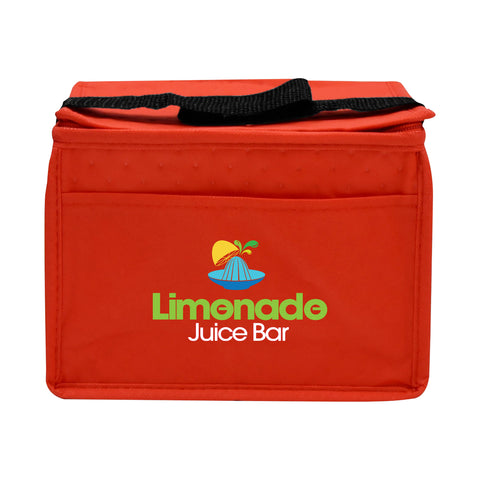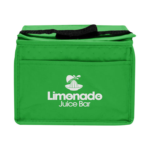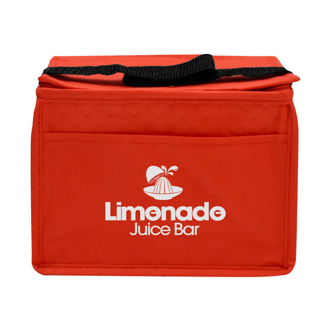 Made Of 80 Gram Non-Woven, Coated Water-Resistant Polypropylene. Foil Laminated PE Foam Insulation. Front Pocket. Web Carrying Handles. Spot Clean/Air Dry. Complies with Prop 65. 5.5000" D x 7.2500" W x 5.5000" H