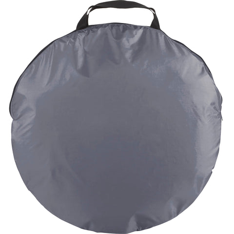 This Pop Up Beach Tent features silver-coated UV fabric that offers all-day protection from the sun. This two-person tent is lightweight and able to be quickly set-up and folded back into the included carry bag. For set-up, simply remove the tent from the bag and toss it into the air. The tent opens swiftly and on its own! Use the included six stakes to secure it firmly to the ground. Tent dimensions when open 60'' x 51'' x 43'' with 60'' x 67'' canopy floor. Tents ship outside of carrying cases and must be inserted separately. 3" D x 18.5" W x 18.5" H