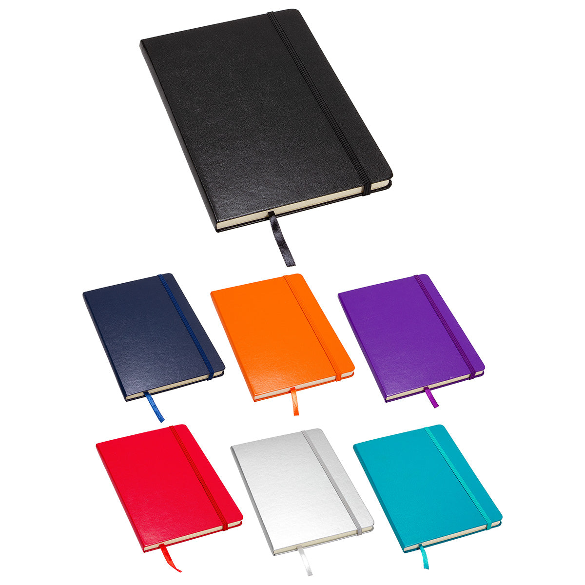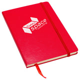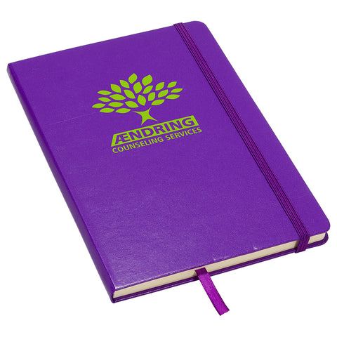 The ZenithHardcover Journal offers an elastic closure, 70GSM Ivory ruled paper, 80 sheets (160 pages) and ribbon bookmark. Complies with Prop 65. 5.5" L x 8.375" W x 0.5" H