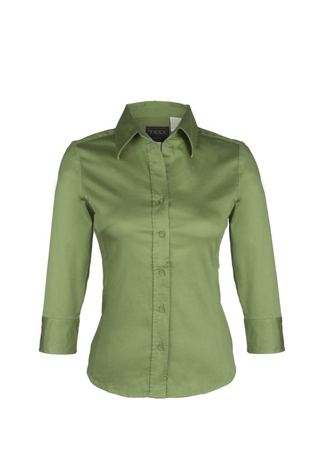 LADIES EASY CARE COTTON BLEND DRESS SHIRTS Long Sleeve(GREY) (XS-3XL)