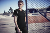 The Renegade short sleeve tee features silver feflective trim to help you stand out. Dynamic design with bold color contrast. Mesh panels for greater ventilation. Knitted striped collar