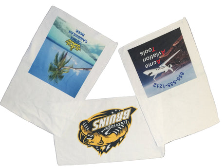 From $2.33Unit price /UnavailablePlush and Soft White Velour Terry Cotton Blend Hand, Sports Towel, 15x25, Sublimated Full color logo