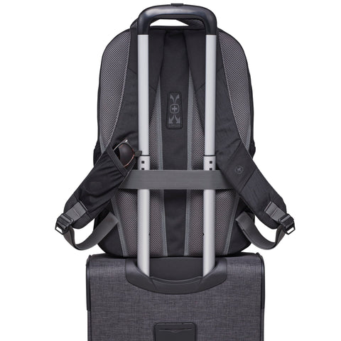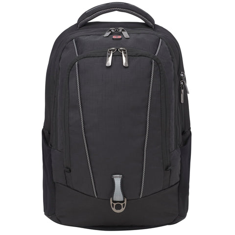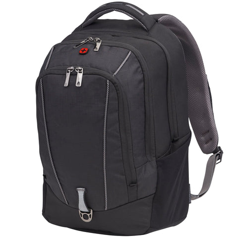 The Wenger Origins Recycled 15" Computer Backpack is made from eco-friendly RPET. The open main compartment features a 15" computer sleeve, plus plenty of room for your belongings. The bag also features an organizational front pocket with key fob, an additional zippered pocket and a mesh foam pocket. The front panel offers a custom d-ring for hanging carabiners. This bag features Wenger® Airflow moisture-wicking mesh, a supportive back board for computer protection and a back webbing trolley sl. 6.00" D x 12.50" W x 18.50" H