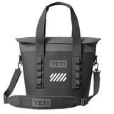The custom Yeti Hopper® M15 Soft Cooler is the perfect refreshment hauler for any day trip or weekend get together. Constructed with high-density fabric, the interior and exterior are puncture and UV ray resistant. The magshield opening uses powerful magnets to create a leak-resistant shield that creates an extra-wide mouth opening and is easily closed with a gentle push. Keep your personal belongings safe in the deep front pocket and hitch on your important gear to the front grid loops. The closed-cell. 20.3" L x 9.2" W x 16" H