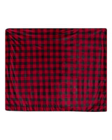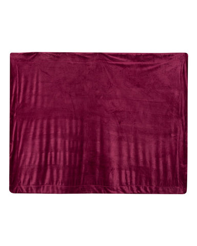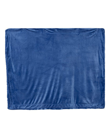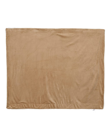 9 oz., 100% polyester plush micro mink fleece; 100% lambs wool Sherpa; 220 g/sm; Cozy Fleece face that reverses to soft luxurious Sherpa; Fully hemmed; Hidden zip pocket for easy embroidery access; Machine wash& dry; 50" x 60";