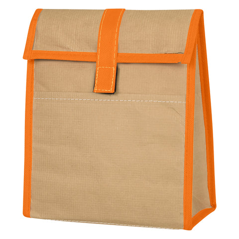 Made Of 95 GSM Eco-Woven Paper. Foil Laminated PE Foam Insulation. Front Pocket. Hook And Loop Tab Closure. Spot Clean/Air Dry. Complies with Prop 65. 4.0000" D x 8.0000" W x 9.5000" H