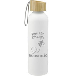 The Ryze 22oz Aluminum Sports bottle features single-wall construction with a screw-on, spill-resistant FSC® bamboo lid. The lid's built in silicone strap is designed to make this item easy to carry when you are on the go. The exterior is a matte metallic finish. Hand wash only. 2.6" D x 2.6" W x 9.57" H