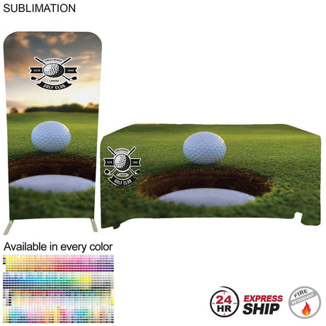 48 Hr Quick Ship - Tradeshow Booth Package Sleek,3'W x 96"h EuroFit Display and 6' Sub Tablecloth