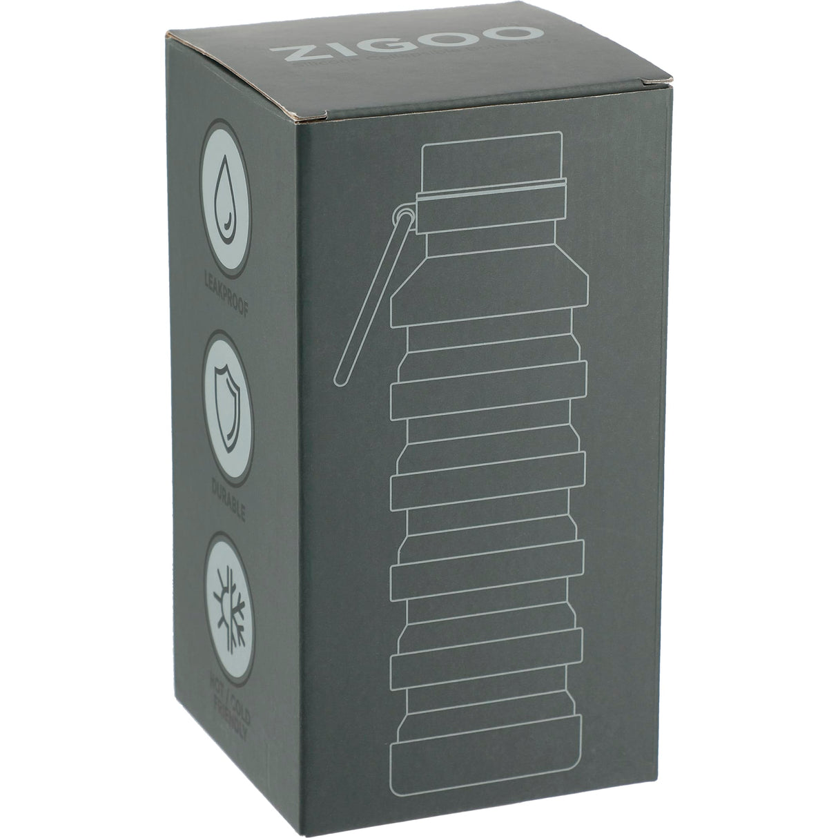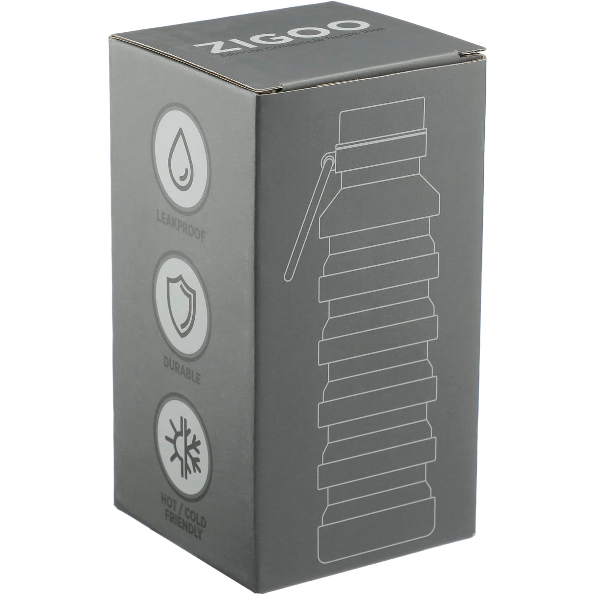 Save space and stay hydrated with the Zigoo Silicone Collapsible Bottle 18oz. This portable, lightweight, compact bottle collapses from a height of 9.2" to 5.45" and weighs just 198g for easy storage. The Zigoo bottle's unique design features thoughtful details like a leak-proof stainless steel lid, carabiner for easy carrying, and wide mouth for ice cubes. 2.8" D x 2.8" W x 5.9" H
