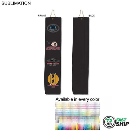 From $5.07Unit price /Unavailable48Hr Quick Ship-Microfiber Dri-Lite Terry Golf Towel, 18" length, Trifold Grommet & Hook, Sublimated