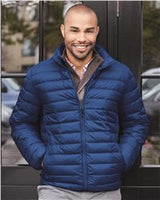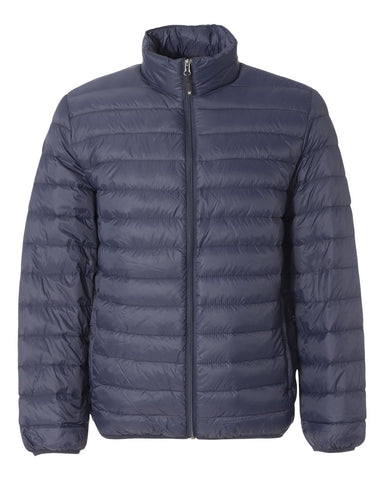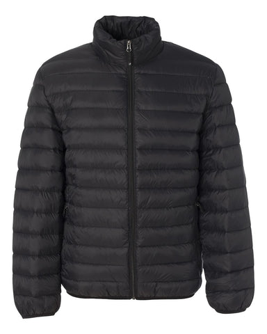 This 32 degrees packable down jacket features 100% 380T high-density nylon, 90/10 duck down/feather filling. Features water and wind resistant, zip front placket with stand up collar, elastic windproof cuffs, front pockets with side entry, interior pockets, fold and stows into separate pouch. Complies with Prop 65.