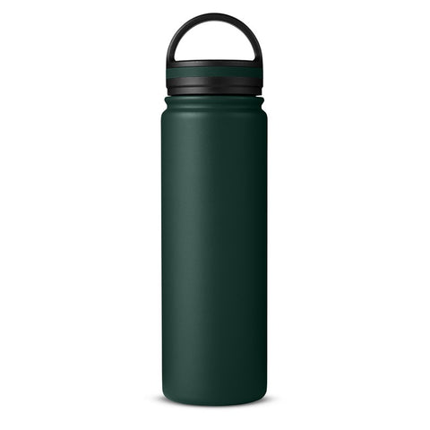 This 24 Oz. (709 mL) double wall vacuum insulated bottle features a powder coated finish with a 304 Stainless Steel interior and a 201 Stainless Steel exterior. Has a Polypropylene Plastic screw-on lid with handle. Do not microwave, place in freezer and hand wash only. Designed for use with both hot and cold beverages and includes Core 365® engraved logo in base of each bottle. Complies with Prop 65. 11" H x 3" Diameter