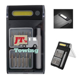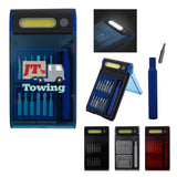 This divot repair tool with golf ball marker is also a groove cleaner & club rest. Prongs snap into action at the push of a button. Locks open & closed. Ball marker attaches to divot repairing tool magnetically. Complies with Prop 65. 1.25" W x 5" H x 0.5" D