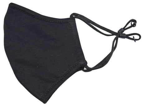 3 Layer Adult Size Fashion Face Mask. Black Cotton with Polypropylene filter. Adj straps/nose clip