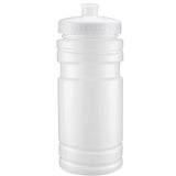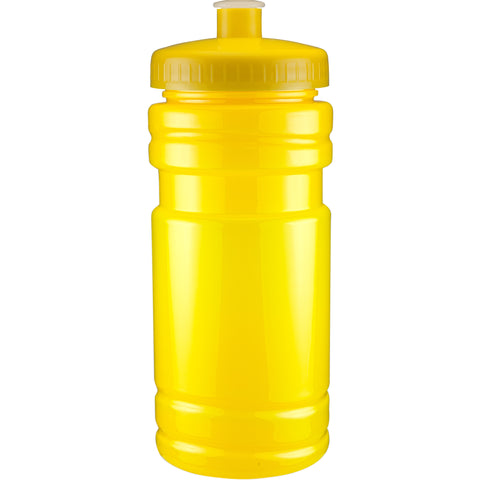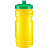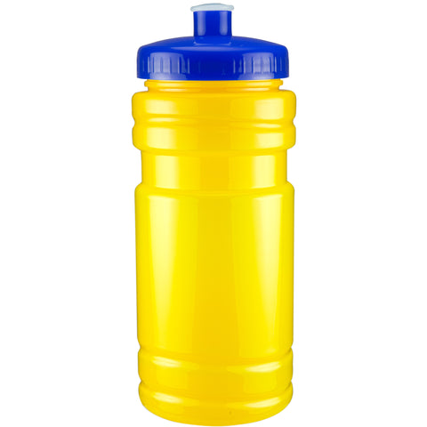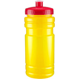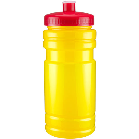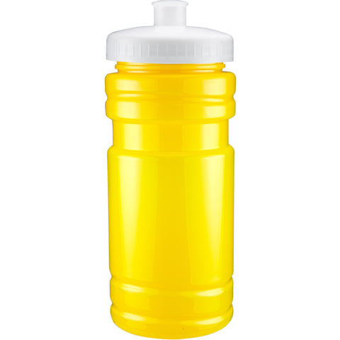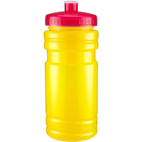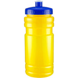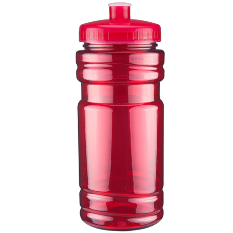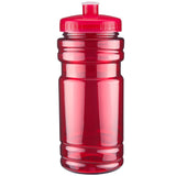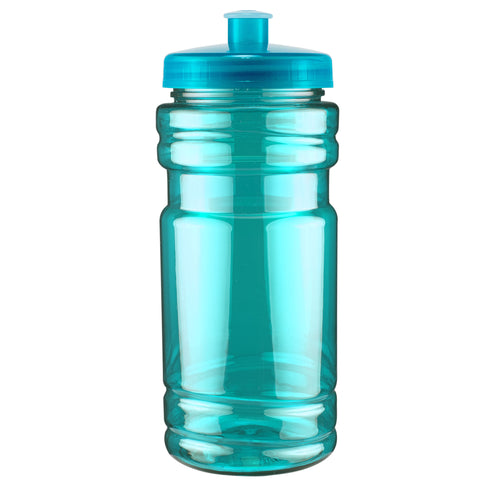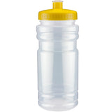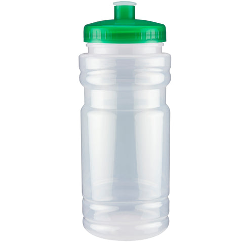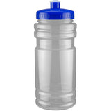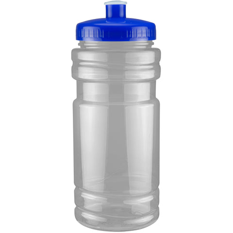 20 oz sport bottle. Plastic, PET, BPA free. A great wellness gift for giving away at sporting events like marathons, fun runs, cycling events, basketball games and much more. Includes a one color two sided imprint and Lid Assembly. These water bottles are molded in the USA using imported material, lids are imported. HAND WASH ONLY, Meets FDA requirements. Complies with CPSIA, FDA, Prop 65. 6 1/2" H x 2 7/8" Diameter