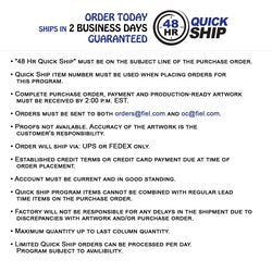 Once you place your order, you'll immediately receive an e-mail confirmation with your order number and a link to your customized product (virtual proof). If you have another artwork you'd like us to use or work from to create new art, simply reply to this e-mail and attach your art. Shortly thereafter (during business hours), you'll receive an email from the Customer Care representative who will be taking personal care of your order. This promotional products expert will fully review your order, make suggestions, confirm dates and review your artwork. (remember, all of your artwork for an order is FREE. We don't charge for art design and prep!).