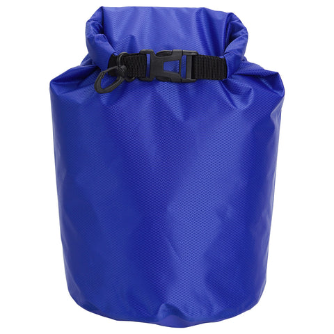 5-Liter Waterproof Gear Bag, constructed of 210T polyester grid cloth, roll down top of bag and buckle ends together for a waterproof seal and includes carabineer clip. Note that sizes of 10-Liter and 20-Liter are also available. Complies with Prop 65. 10.5" W x 14" H