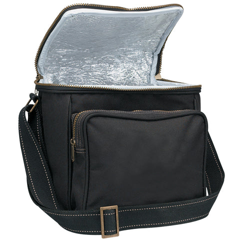 This 6 Pack Cooler Bag comes complete with heat-sealed leakproof clear vinyl metallic liner and adjustable/non-detachable shoulder strap with plastic hardware. Upgraded two-toned webbing makes this cooler bag stand out from the crowd as does the decorative plastic zippers. Outside dry pocket (8.5" W x 7" H x 1.5" D) for securely holding ancillary things. Cooler Bag holds a 6 pack. Complies with Prop 65. 9" W x 9" H x 8" D