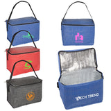 Two-tone heather insulated lunch bag with 80 GSM non-woven polypropylene exterior and EPE foil lining. Terylene carry strap measures (approximately 21.65"l x 1"w). Holds up to 6 cans of your favorite beverage. Recommended weight tolerance: 22 lbs. Production time may vary due to imprint method. Complies with Prop 65. 10" W x 6.5" H x 5.5" D