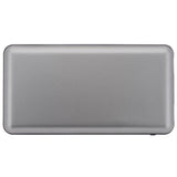 ABS black / graphite plastic shell. UL Certified, Grade A battery. Power bank capacity: 8000 mAh. Micro Input: 5V/1.5A. Dual standard USB Output: 5V/2.1A (high) and 5V/1A (low). Certifications: FCC, MSDS and UN38.3. Approx recharge time: 6-8 hours. Indicator lights for battery levels. Includes Micro USB charging cable. 2.875" H x 5.5" W x 0.625" D