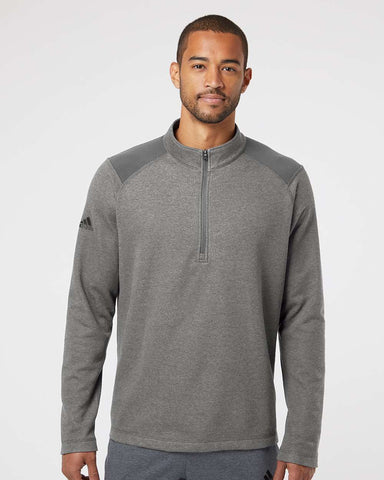 Adidas Heathered Quarter Zip Pullover w/Colorblocked Shoulders