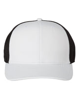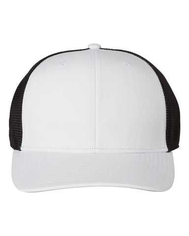 97% Polyester, 3% Spandex, Slightly Curved Brim, Self Fabric Sweatband, Contrast Logo, Snapback Closure, Head Cover, One Size Fits All, Trucker Hat