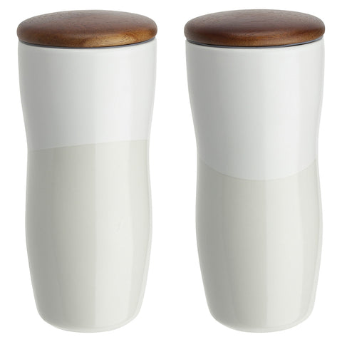 Adriano 12 oz Double-wall Ceramic Tumbler with Wood Lid