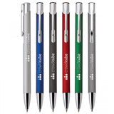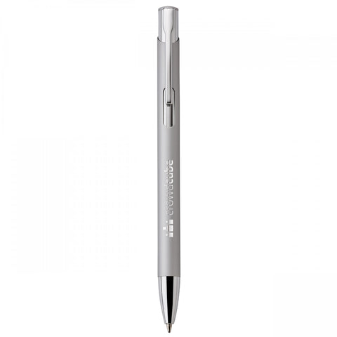 If you like our line of Ali writing tools, then youll love our Ali Executive. This heavyweight 23 grams, push-action ballpoint brass pen has chrome trim, rubberized matte metallic finish and a matching accent on the plunger. Logos will have a shiny appearance when laser engraved. 5.4375" L x 0.0000" W x 0.0000" H