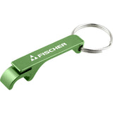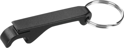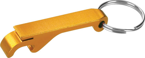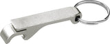 The Aluminum Bottle/Can Opener features both an opener for bottles and flip-top cans. It also features a metal split key ring with room for home, office, or car keys. 0.5" D x 0.44" W x 2.56" H