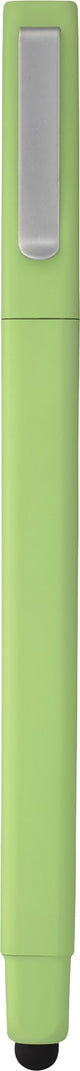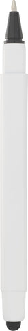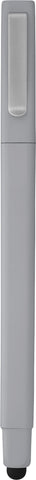 With its square barrel and removable pen cap, the Ambassador offers distinctive looks in a practical package. Its sturdy built-in metal clip allows for the pen to be easily inserted into a journal spine or over the front cover of a notebook. The Ambassador Square Ballpoint Stylus features a soft rubber stylus for touchscreen devices, along with a ballpoint tip that writes using the included black ink. This pen is made from ABS plastic. 5" H
