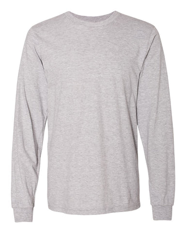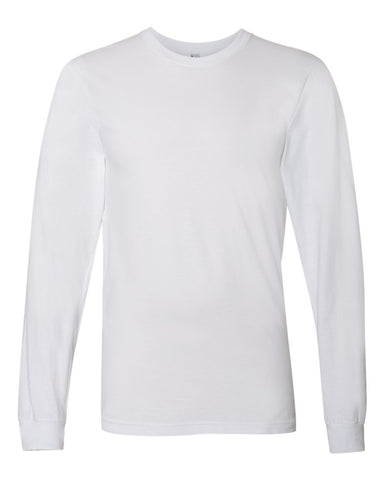 The American Apparel® Fine Jersey Long Sleeve T-Shirt is 4.3 Oz., 100% combed ringspun cotton, has shoulder to shoulder taping, and 7/8" non topstitched collar. Includes 1" double needle sleeves and bottom hem. Complies with Prop 65.